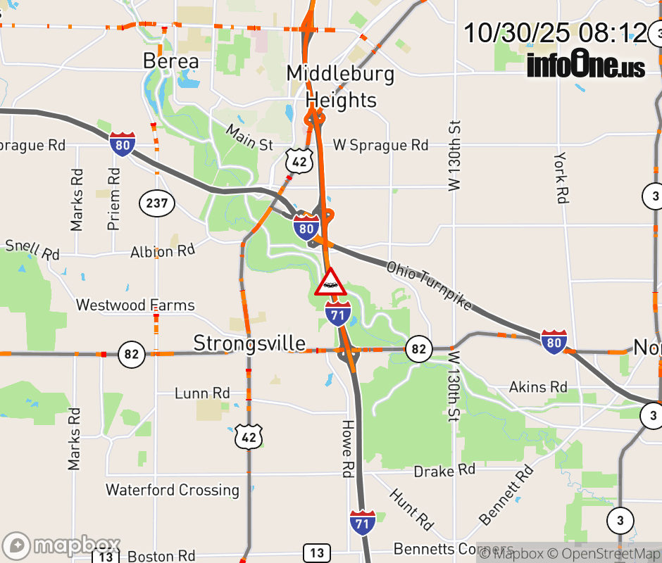 The left shoulder is blocked on I-71 North beyond SR-82/Royalton Rd, due to a crash. ![]() |
