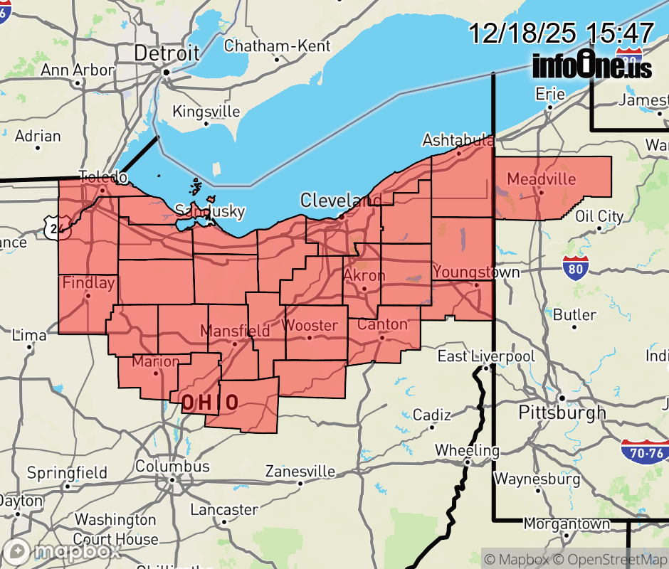 Canceled 12/19/25 9:00 AM Special Weather Statement issued December 18 at 3:46PM EST by NWS Cleveland OH Temperatures will rapidly fall below freezing from west to east early Friday morning. This will begin around 3 AM along the I-75 corridor in Northwest Ohio, with all of northern Ohio and Northwest Pennsylvania expected to be below freezing by 6 AM. Roads, bridges, parking lots, sidewalks, and other untreated surfaces that are still wet from rain and snowmelt may freeze leading to patches of black ice. Plan on giving yourself extra time to reach your destination during the Friday morning commute. Use caution while walking on untreated sidewalks, stairs, and parking lots. ![]() |