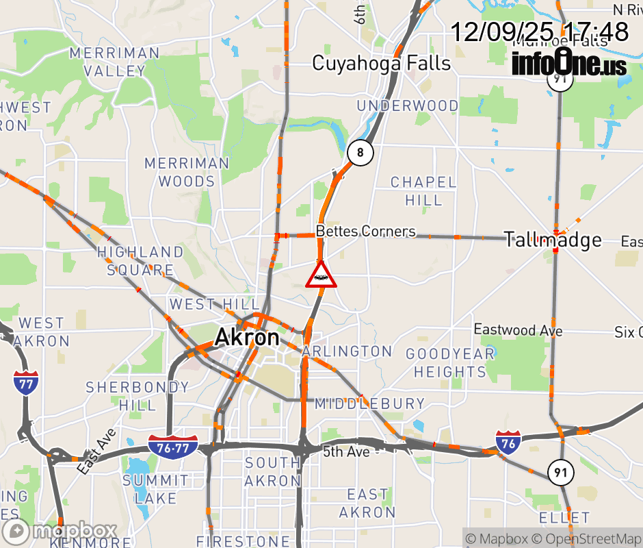 The right lane is blocked on SR-8 South/SR-59 West beyond SR-261/Tallmadge Ave, due to a crash. ![]() |