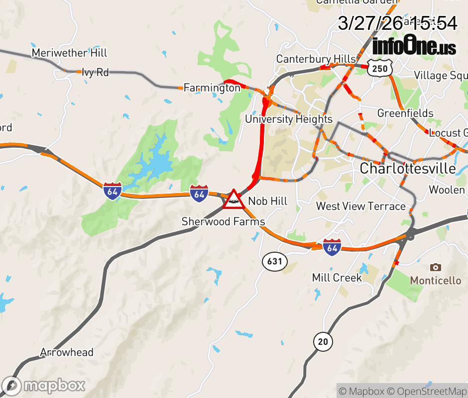 On US-29 in the County of Albemarle, in the vicinity of the ramp from I-64W, motorists can expect delays due to a vehicle crash. The south left shoulder and left lane are closed. ![]() |