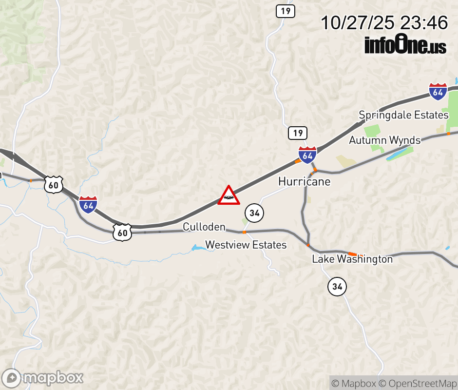 Canceled 10/28/25 1:22 AM Location: I-64 at MM 32.0, WV Accident.