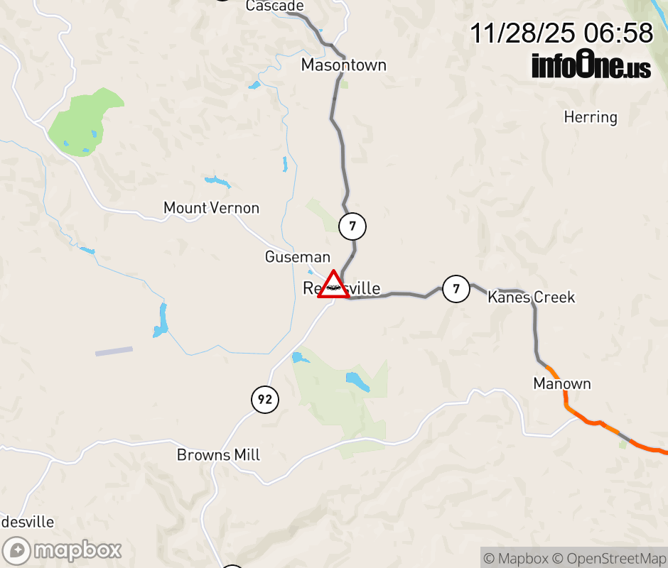 Vehicle Crash on WV-92 (Area of 7314 Kingwood Pike) in Reedsville. Updated: Fri 11/28/25 6:58 AM EST ![]() Updated: Fri 11/28/25 6:58 AM EST |