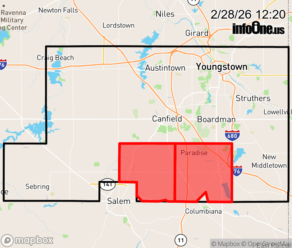 Canceled 2/28/26 2:20 PM Mahoning County has 1 power outage affecting 667 customers. Ohio Edison 667 without power Beaver Township: Customers affected: 592 (19%) Estimated repair: Sat 2:30 PM Green Township: Customers affected: 58 (4%) Estimated repair: Sat 2:30 PM Goshen Township: Customers affected: 19 (1%) Estimated repair: Sat 2:30 PM Canfield: Customers affected: 19 (< 1%) Estimated repair: Sat 2:30 PM Canfield Township: Customers affected: 19 (< 1%) Estimated repair: Sat 2:30 PM Youngstown: Customers affected: 19 (< 1%) Estimated repair: Sat 2:30 PM Austintown Township: Customers affected: 19 (< 1%) Estimated repair: Sat 2:30 PM Updated: Sat 2/28/26 12:20 PM EST ![]() Updated: Sat 2/28/26 12:20 PM EST |