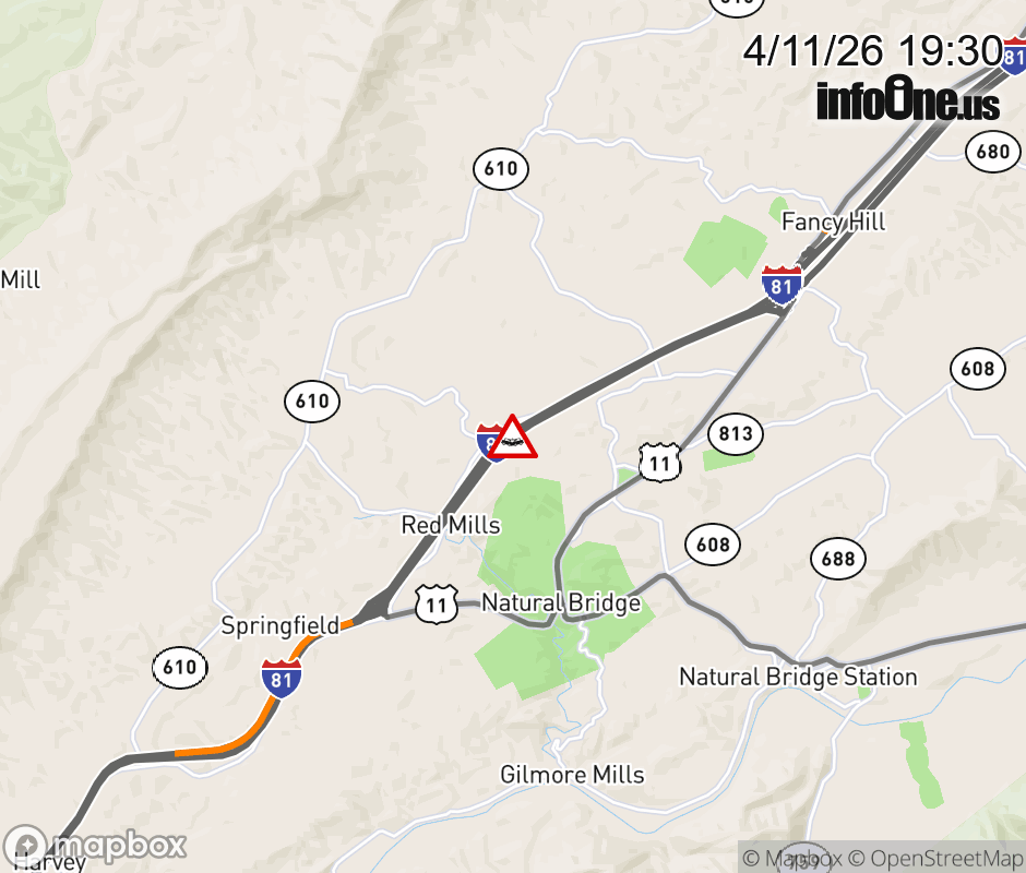 On I-81 at mile marker 177.8 in the County of Rockbridge, motorists can expect delays due to a vehicle crash. The north left shoulder and left lane are closed. ![]() |