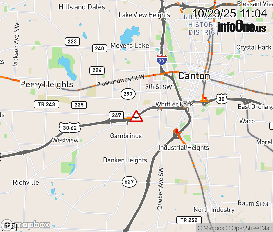Expect lane closures on US-30/US-62 West at SR-297/Raff Rd, due to a crash. Updated: Wed 10/29/25 11:04 AM EDT ![]() |