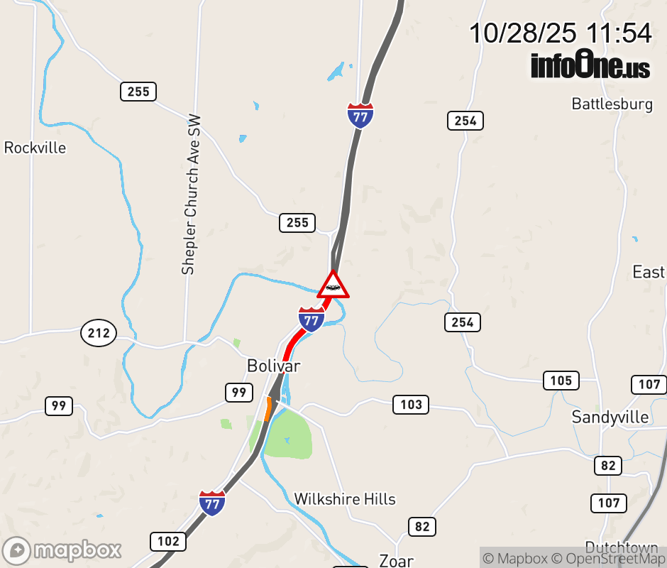 Expect lane closures on I-77 North beyond SR-212/Bolivar/Zoar, due to a crash. Updated: Tue 10/28/25 11:54 AM EDT ![]() Updated: Tue 10/28/25 11:54 AM EDT |