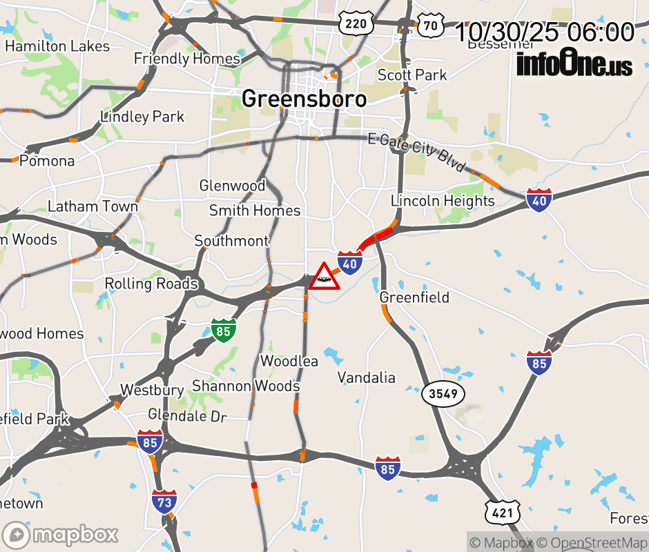 The right lane is closed before Exit 221 (S Elm Eugene St). Updated: Thu 10/30/25 6:00 AM EDT ![]() Updated: Thu 10/30/25 6:00 AM EDT |