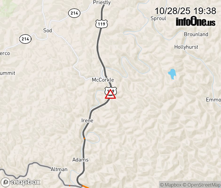 Canceled 10/28/25 7:56 PM Location: US-119 at MM 0.0, WV Accident.