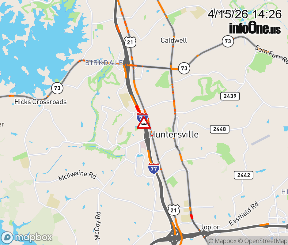 Crash on I-77 South Bound near exit 23, Gilead Rd. The left express lane is blocked. The North Bound Express lanes are blocked as well. ![]() |
