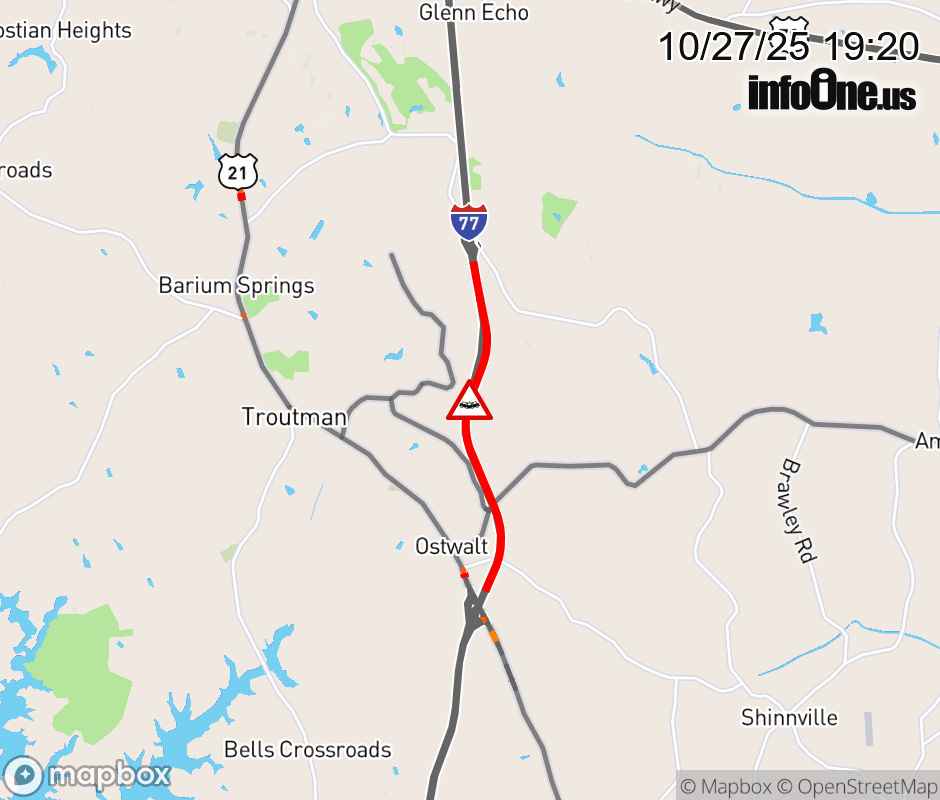 The right shoulder is closed past Exit 42 (US 21). Updated: Mon 10/27/25 7:20 PM EDT ![]() Updated: Mon 10/27/25 7:20 PM EDT |
