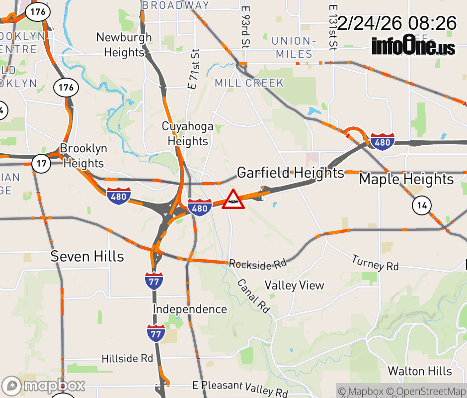The right shoulder is blocked on I-480 West beyond Transportation Blvd/E 98th St, due to a crash.