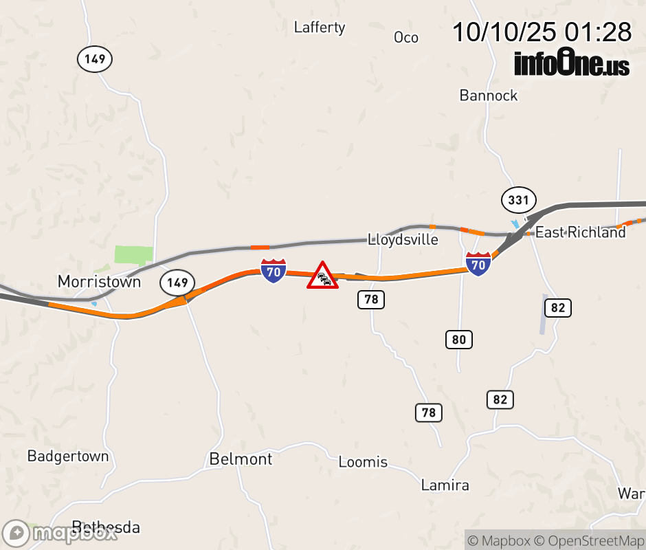 The right lane is blocked on I-70 West beyond SR-331, due to repairs/maintenance. ![]() |