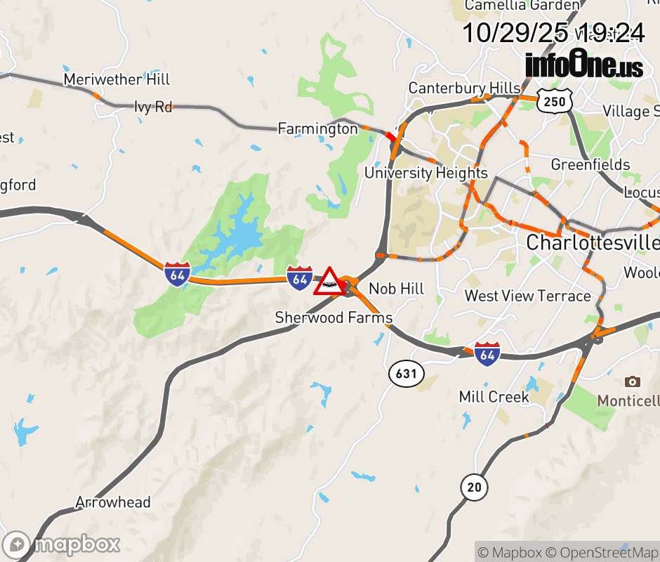 On I-64 at mile marker 118 in the County of Albemarle, motorists can expect delays due to a vehicle crash. The east right shoulder is closed. Updated: Wed 10/29/25 7:24 PM EDT ![]() Updated: Wed 10/29/25 7:24 PM EDT |