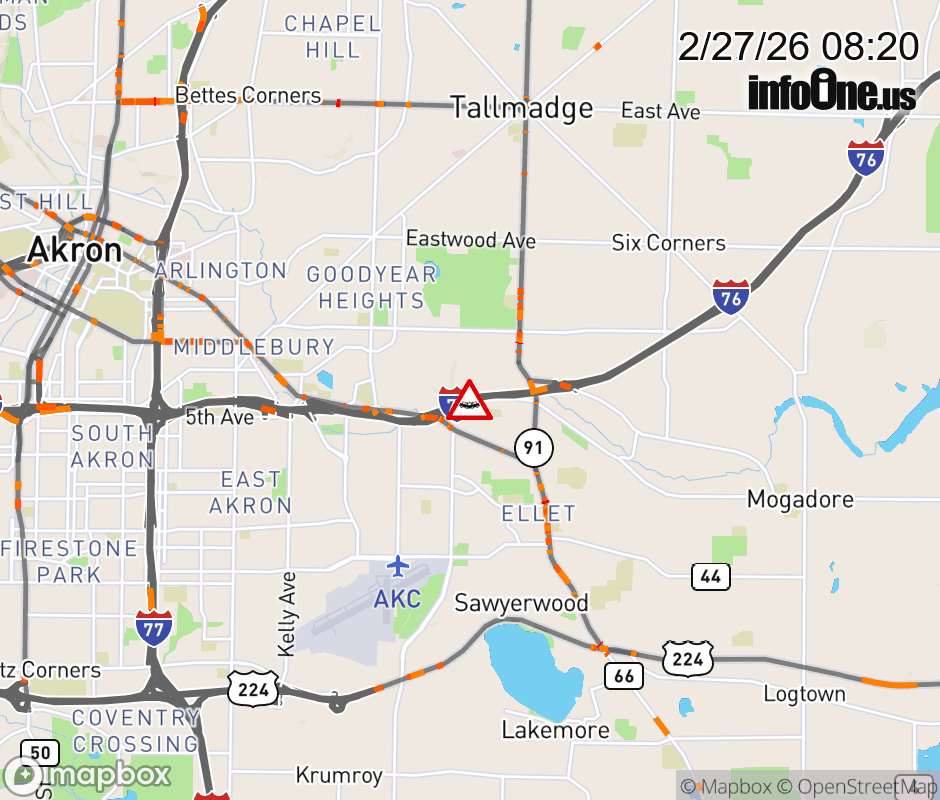 The left shoulder is blocked on I-76 West at SR-18/E Market St, due to a crash. ![]() |