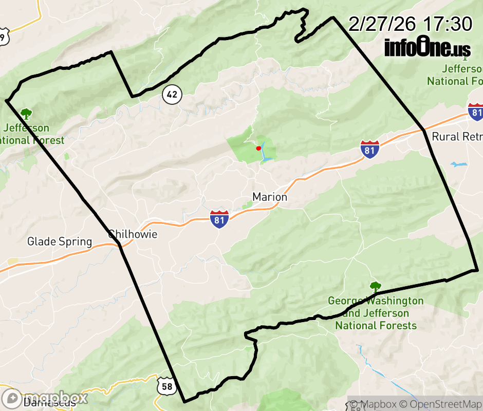 Canceled 2/27/26 7:11 PM Smyth County has 1 power outage affecting 4 customers. Appalachian Power 4 without power Marion: Customers affected: <5 (< 1%) Estimated repair: Fri 9:00 PM Updated: Fri 2/27/26 5:30 PM EST ![]() Updated: Fri 2/27/26 5:30 PM EST |