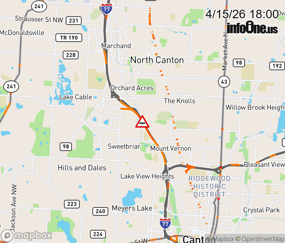 Expect lane closures on I-77 South beyond Everhard Rd/Whipple Ave, due to a crash. ![]() |
