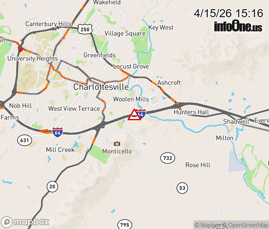 On I-64 at mile marker 123 in the County of Albemarle, motorists can expect delays due to a vehicle crash. The west right shoulder is closed. ![]() |
