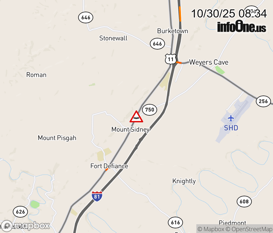 On Rt. 750 in the County of Augusta, in the vicinity of Lee Hwy; US-11N/S, motorists can expect delays due to a vehicle crash. All south lanes are closed. ![]() |