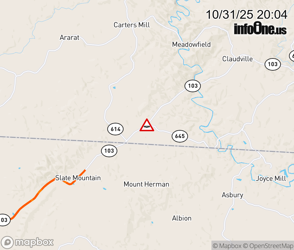On VA-103 East in the County of Patrick, in the vicinity of Archies Creek Rd; Hatchers Chapel Rd; Rt. 645N/S (Patrick County), motorists can expect delays due to a vehicle crash. Lane closures exist. ![]() |