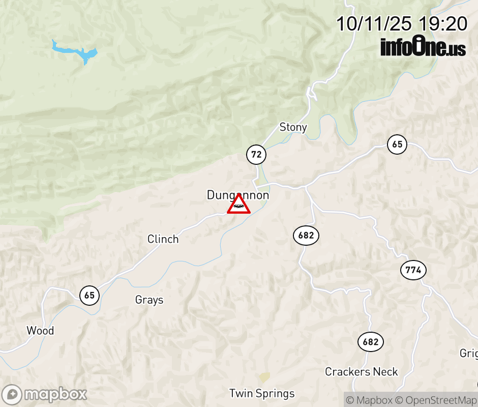 On VA-65 East in the County of Scott, in the vicinity of Sarsfield St; Rt. 1015N/S (Scott County), motorists can expect delays due to a vehicle crash. Lane closures exist. ![]() |