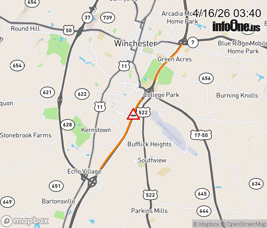 On I-81 South at mile marker 312.7 in the County of Frederick, motorists can expect delays due to a tractor trailer crash. Updated: Thu 4/16/26 3:40 AM EDT ![]() Updated: Thu 4/16/26 3:40 AM EDT |