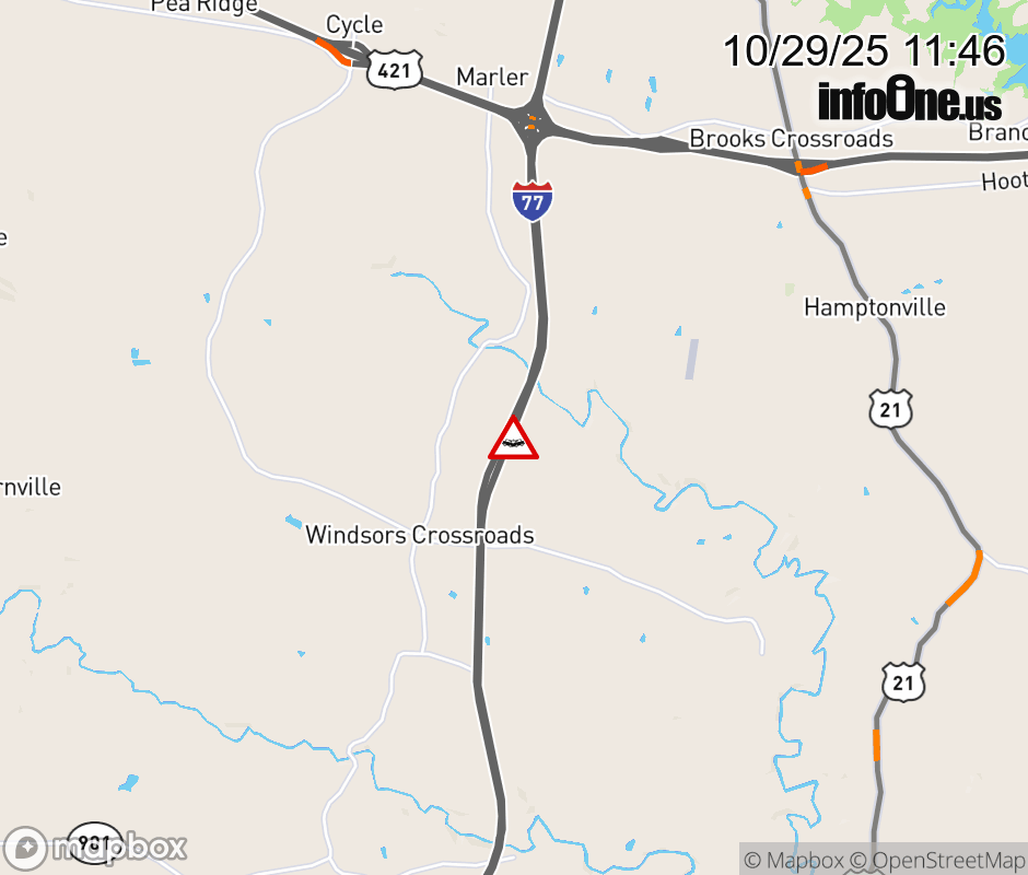 Canceled 10/29/25 12:40 PM Location: I-77N at MM 72, NC Vehicle Crash.