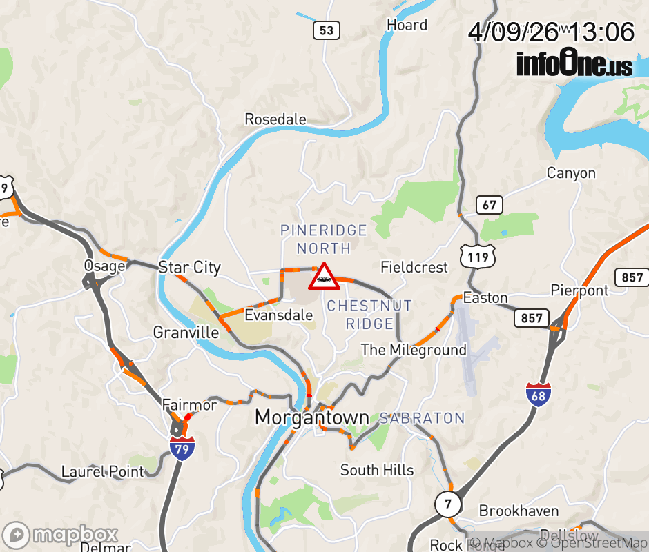 Vehicle Crash on WV-705 (201st Memorial Hwy) & Mon General Dr in Morgantown. ![]() |