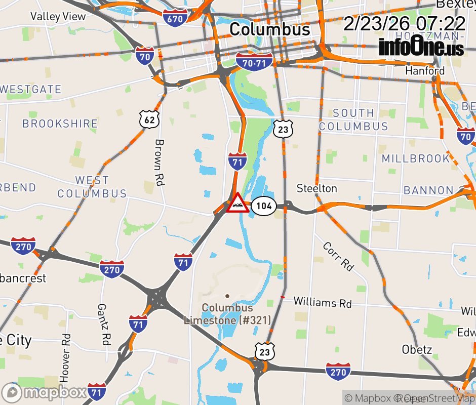 Expect lane closures on Ramp SR-104 West to I-71 North, due to a disabled vehicle. ![]() |
