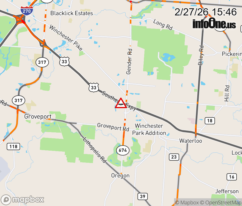 Ramp to SR-674/Gender Rd from US-33 East is blocked due to crash. ![]() |