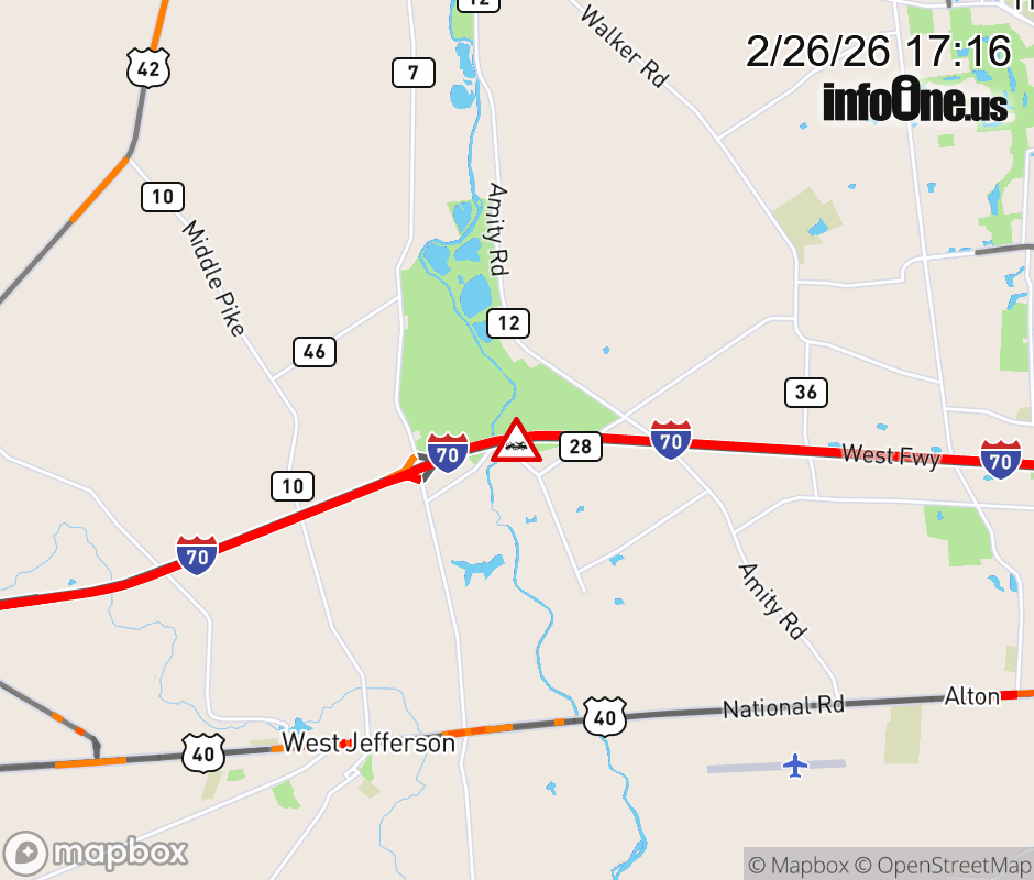 The left lane is closed on I-70 East beyond SR-142/Plain City, due to a disabled vehicle. Updated: Thu 2/26/26 5:16 PM EST ![]() Updated: Thu 2/26/26 5:16 PM EST |