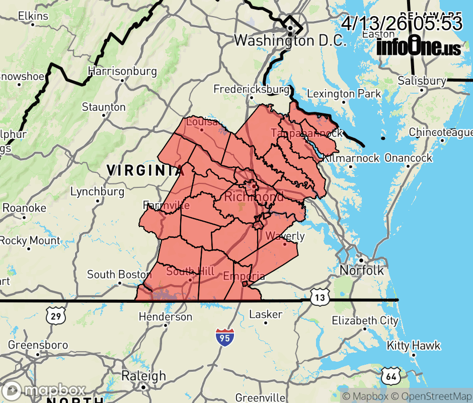 Canceled 4/13/26 6:00 PM Special Weather Statement issued April 13 at 5:52AM EDT by NWS Wakefield VA The combination of low relative humidity values in the 25 to 30 percent range, dry fuels, and SW winds gusting up to 20-25 mph will result in an increased risk for the rapid spread of wildfires across much of central and eastern Virginia, including the Richmond Metro area, the Virginia Piedmont, and inland portions of the Virginia Northern Neck. Residents are urged to exercise caution handling any potential ignition source, including machinery, cigarettes, and matches. Be sure to properly discard all smoking materials. Any dry grasses and tree litter that ignite will have the potential to spread quickly. Virginia residents are reminded that open burning is prohibited before 4 PM EDT each day through April 30th. ![]() |