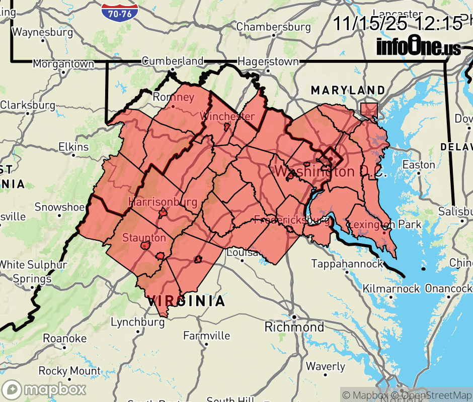 Canceled 11/15/25 12:25 PM Fire Weather Watch issued November 15 at 12:14PM EST until November 16 at 6:00PM EST by NWS Baltimore MD/Washington DC The National Weather Service in Baltimore MD/Washington has issued a Fire Weather Watch for strong wind winds and low humidities, which is in effect from Sunday morning through Sunday afternoon. * TIMING... From Sunday morning through Sunday afternoon. * WINDS... Northwest 15 to 25 mph with gusts up to 45 mph. * RELATIVE HUMIDITY... 15 to 25 percent. * IMPACTS... Any fire that develops will catch and spread quickly. Outdoor burning is not recommended. * FUEL MOISTURE... ![]() |