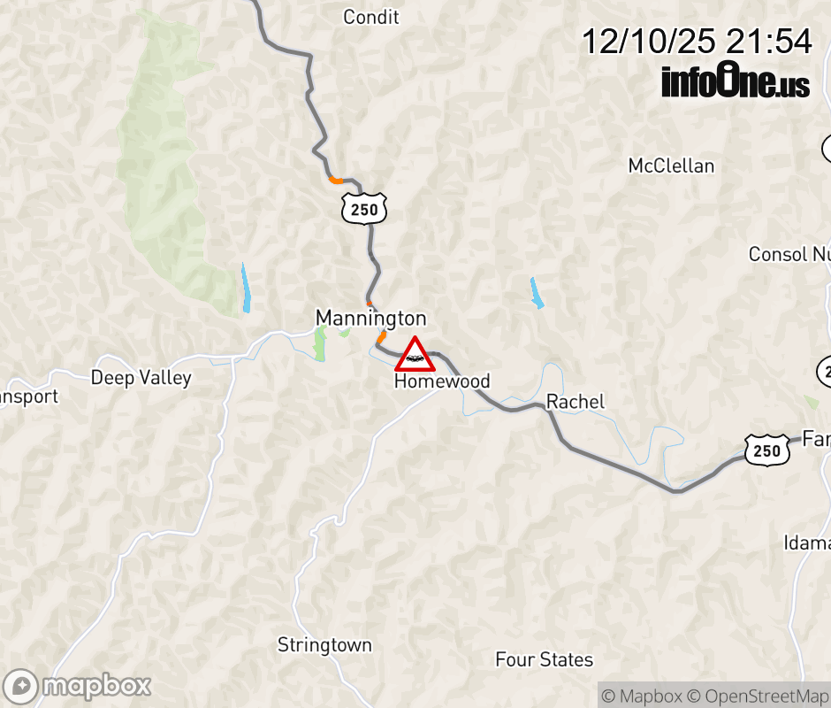 Vehicle Crash on US-250S (920 E Main St, Mannington). The southbound road is closed. ![]() |