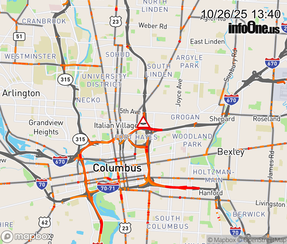 The right shoulder is blocked on Ramp I-71 South to I-670 West, due to a crash. ![]() |