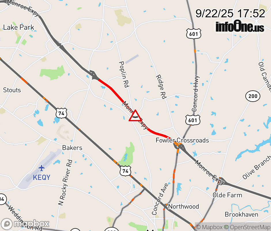 The right shoulder is closed prior to Exit 264 (US 601). Updated: Mon 9/22/25 5:52 PM EDT ![]() Updated: Mon 9/22/25 5:52 PM EDT |
