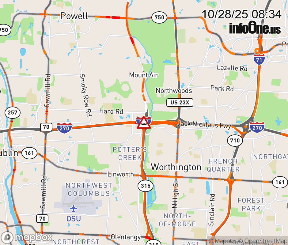 The right shoulder is blocked on I-270 West beyond SR-315 South, due to a crash. ![]() |