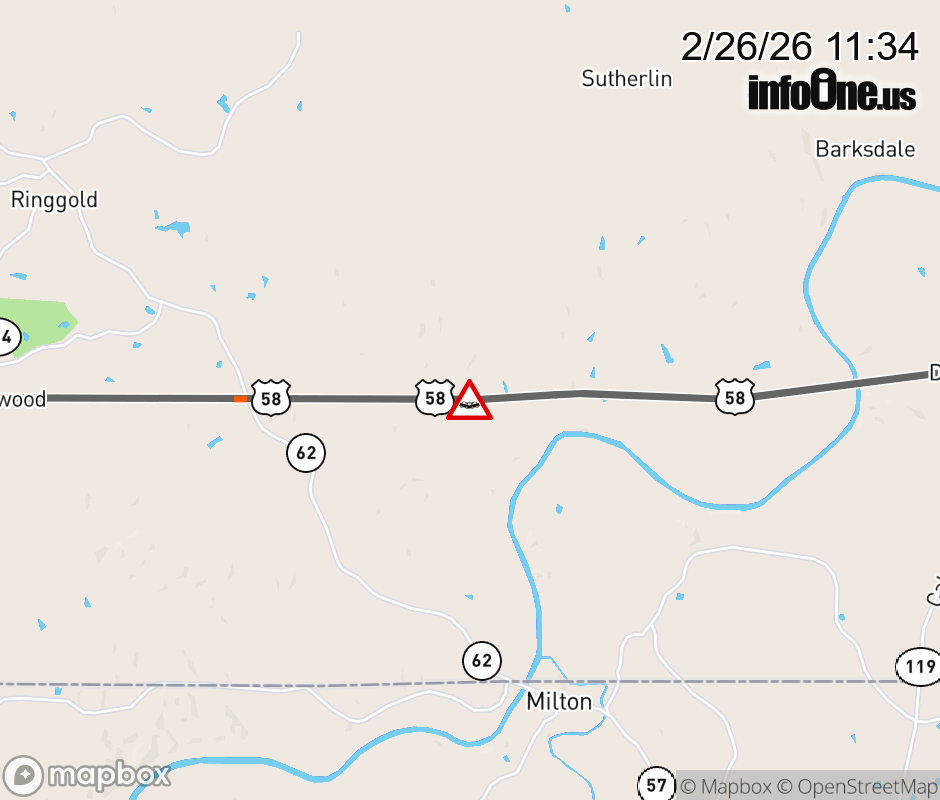 On US-58 East in the County of Pittsylvania, in the vicinity of Rt. 970N/S (Pittsylvania County), motorists can expect delays due to a tractor trailer crash. Updated: Thu 2/26/26 11:34 AM EST ![]() Updated: Thu 2/26/26 11:34 AM EST |