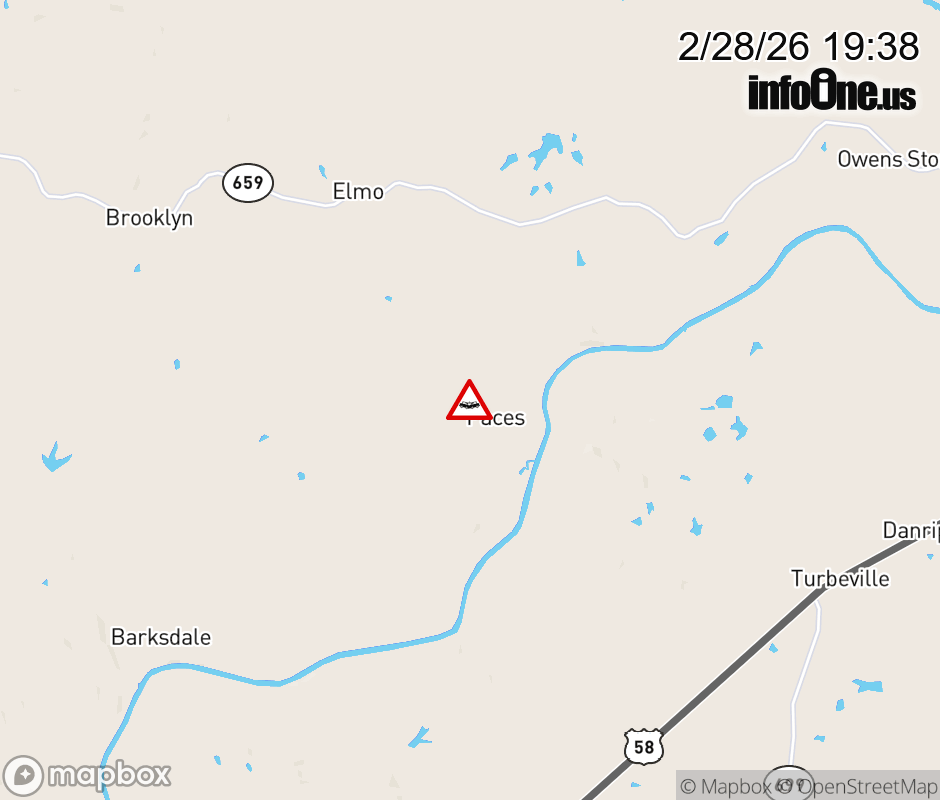 On Rt. 658 in the County of Halifax, in the vicinity of Ashton Hall Rd; Rt. 662E/W (Halifax County), motorists can expect delays due to a vehicle crash. All east lanes are closed. All west lanes are closed. Updated: Sat 2/28/26 7:38 PM EST ![]() Updated: Sat 2/28/26 7:38 PM EST |