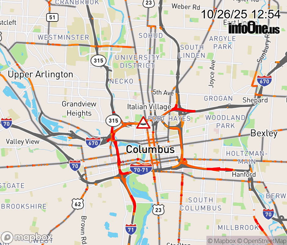 The right shoulder is blocked on I-670 West at Neil Ave/Goodale St, due to a crash. ![]() |