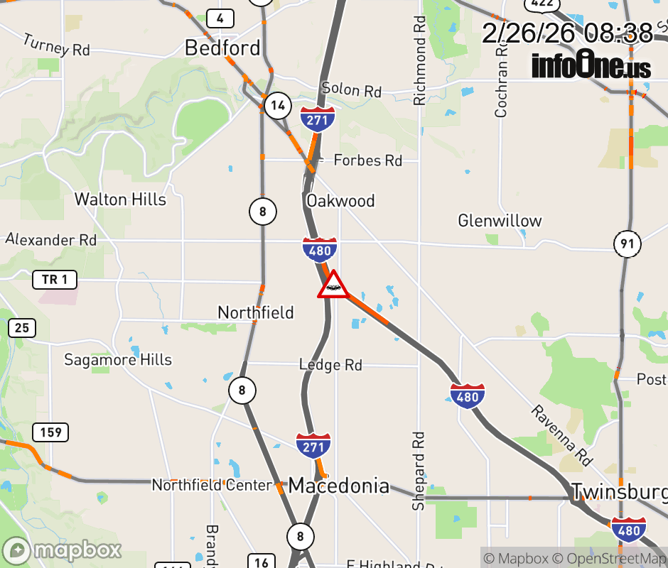 Location: I-480/SR-14 West at MM 32.4, OH Accident.
