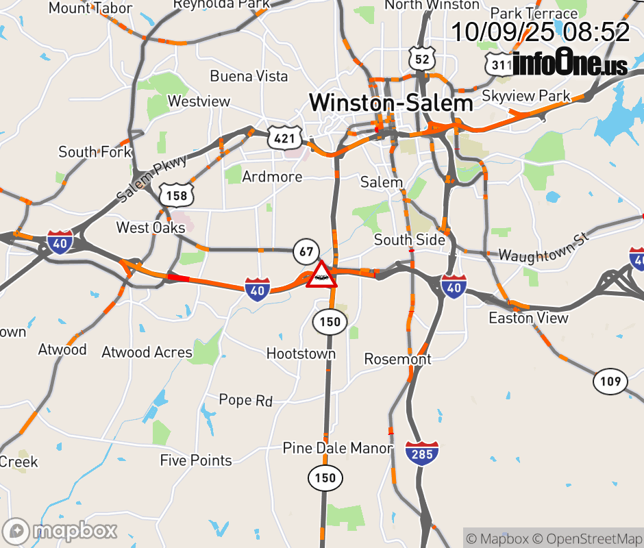 The right lane is closed at Exit 192 (Silas Creek Pkwy). ![]() |