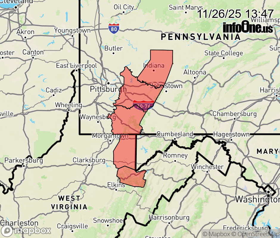 Canceled 11/26/25 8:52 PM Wind Advisory issued November 26 at 1:45PM EST until November 27 at 11:00AM EST by NWS Pittsburgh PA * WHAT... West winds 15 to 30 mph with gusts up to 50 mph expected. Gusts around 55 mph are expected for elevations above 4,000 feet across eastern Tucker county West Virginia. * WHERE... In Pennsylvania, Higher Elevations of Fayette, Higher Elevations of Westmoreland, and Higher Elevations of Indiana Counties. In West Virginia, Eastern Preston, Eastern Tucker, and Western Tucker Counties. * WHEN... From 7 PM this evening to 11 AM EST Thursday. * IMPACTS... Gusty winds will blow around unsecured objects. Tree limbs could be blown down and a few power outages may result. ![]() |
