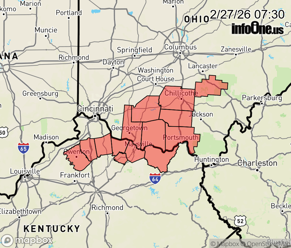 Canceled 2/27/26 9:30 AM Special Weather Statement issued February 27 at 7:28AM EST by NWS Wilmington OH Areas of fog, including some patchy dense fog, have developed this morning. Rapid changes in visibility should be expected when driving. When encountering fog, be sure to turn on low beam headlights, slow down, and increase following distance. ![]() |