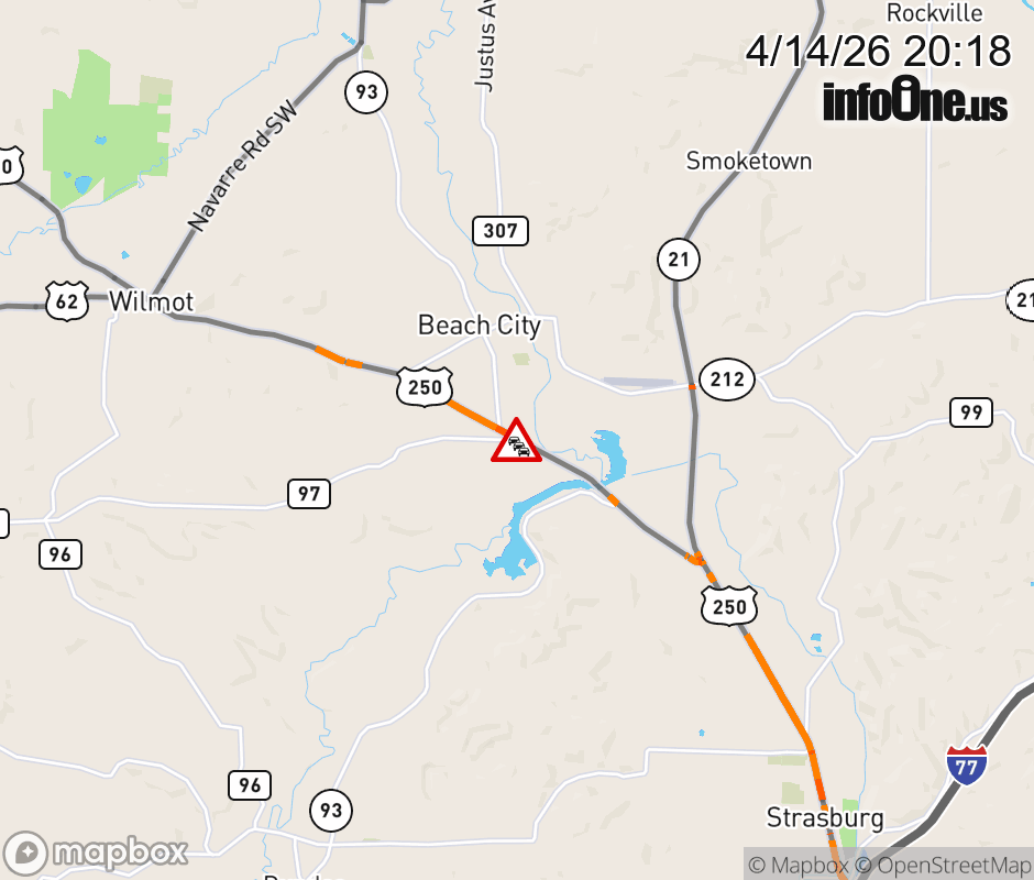 All lanes are blocked on SR-93 North at Chestnut Ridge Rd Nw all lanes are blocked on US-250 East at SR-93, due to repairs/maintenance. Updated: Tue 4/14/26 8:18 PM EDT ![]() Updated: Tue 4/14/26 8:18 PM EDT |