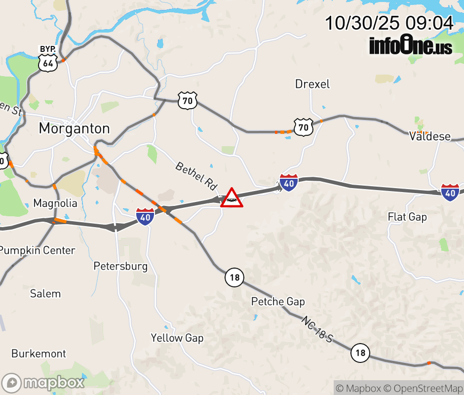 Canceled 10/30/25 9:14 AM Location: I-40E at MM 106, NC Vehicle Crash.