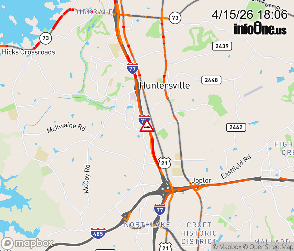 Disabled Vehicle on I-77 North Bound prior to exit 23, Gilead Rd. The left express lane is blocked. ![]() |