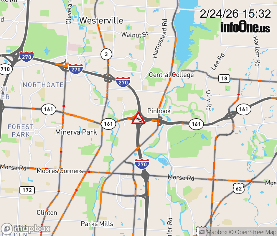 Expect lane closures on I-270 South beyond SR-161/Dublin Granville Rd, due to debris on roadway. ![]() |