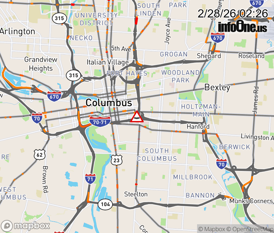 Ramp I-71 South to I-70 West/I-71 South CLOSED because of a crash. ![]() |