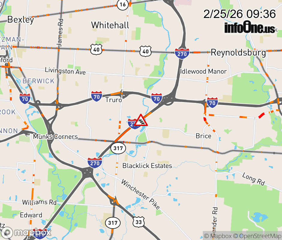 The left lane is blocked on I-270 North beyond US-33, due to repairs/maintenance. ![]() |