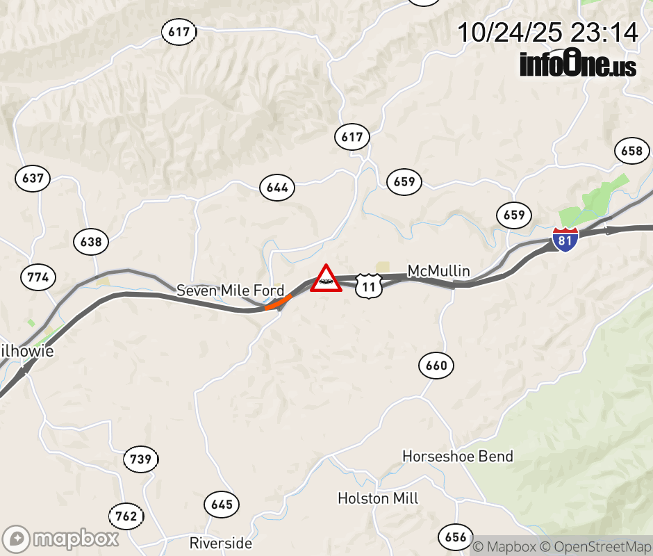 On I-81 at mile marker 40 in the County of Smyth, motorists can expect delays due to a vehicle crash. The south right lane and right shoulder are closed. ![]() |